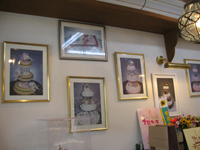 壁には、たくさんのウェディングケーキのお写真が並んでいます