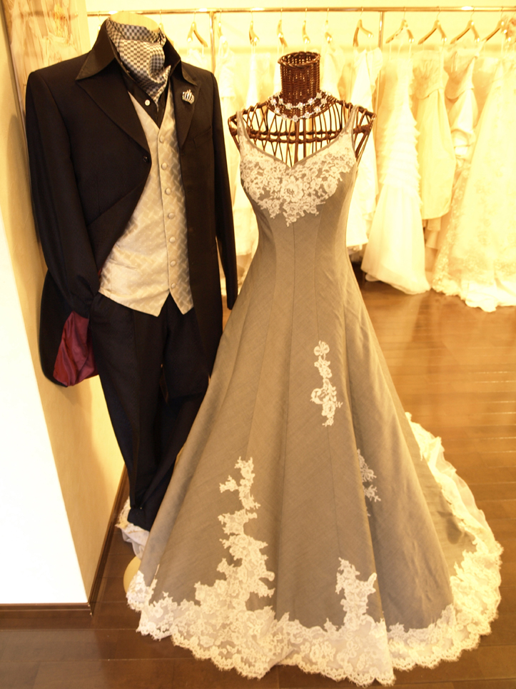 タキシードとカクテルドレスの並びでセッティングしてありました。
