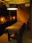 茶色を基調にして、落ち着いた雰囲気の施術室