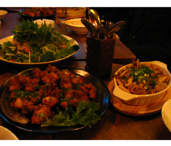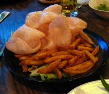 少しピリッと辛い特製餃子や、特製えびせんべいやフライドポテトもいくらでも食べられるおいしいお味♪