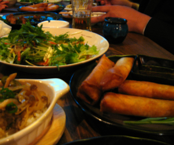 お料理は、大好きな唐揚げにサラダに丼・・・♪特製のパッリパリの春巻きも美味でした(^v^)