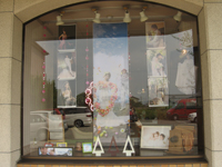正面は、レトロな雰囲気と可愛らしい雰囲気です。正面の大きなガラス張りのディスプレイはいっつもすごくかわいいんです(*^v^*)