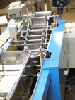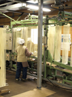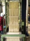 機械を使って伸ばし、1本1本の麺がくっつかないように離します。