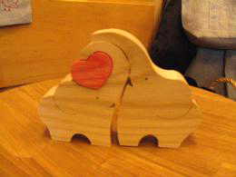 対の象と赤いハートの組み木の置物♪