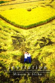 なんと、稲刈りの稲をハートに刈ってその前で写真撮影したものが招待状の表紙になっているのです