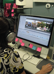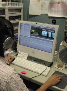 これが、編集作業の風景!人の目や耳では実際、分からない、細かな部分まで映像や音声を手直しして行ってます。