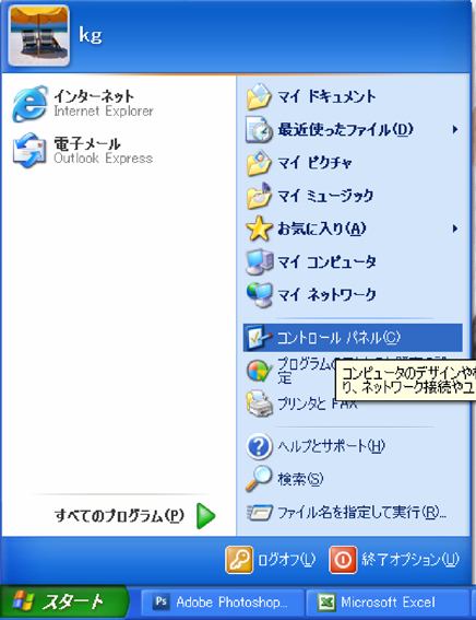 解凍しファイルは、スタートメニューの「コントロールパネル」にある