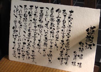 和紙は、地元徳島の阿波和紙を使用しており、丁寧に一文字一文字手書きされている。気持ちのこもった文字から伝わる気持ちはゲストに送るうえで最適だよ。
