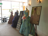 脇町祥雲閣さんのロビーは、陽光が差し込み、いつもキレイなドレス和装が展示されています