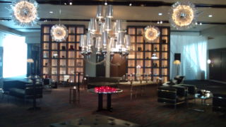 これは入った正面ぐらいの画像です。入った瞬間分かるほど、かなりインパクトのあるシャンデリアで、とってもこのロビーを引き立てる超カッコイイものでした