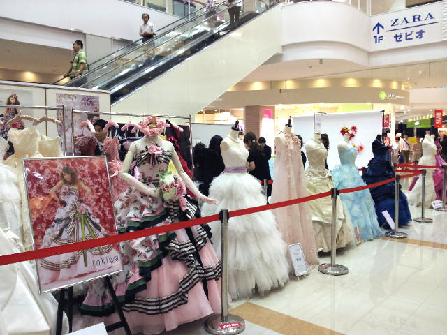 通りかかった方もたくさん飾ってあるドレスをゆっくり見ていってくださったり、二階から見下ろしてくださっている方々とお話させていただいたりして、私もとっても楽しかったです