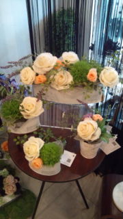 こちらはバラがイメージフラワーなんですが、アレンジの仕方によって表情がとてもちがって見えたりします
