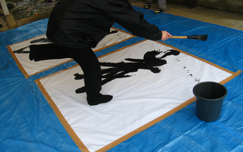 布みたいなものに書いていくんですが