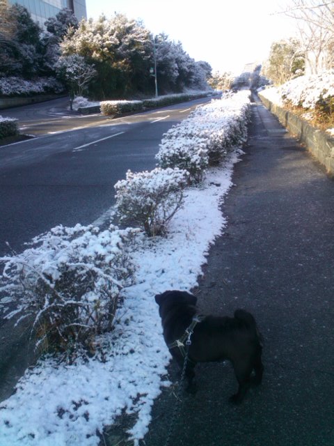 日曜日の朝、愛犬小次郎さんとお散歩に出かけたら、あたり一面雪景色でとっても素敵でした