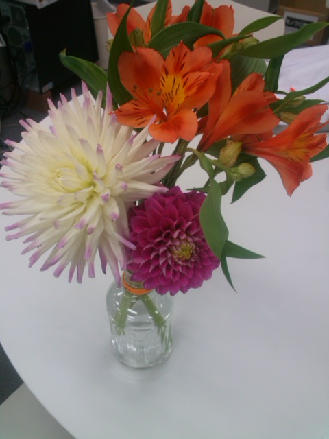 ガラスの陶器に入れられた存在感大なアレンジメントは本当に圧巻で、思わず“わぁ~☆☆♪”と喜び、私の奥底に眠る(笑)女子の部分が猛烈にでてきてしまいました(笑)(笑)