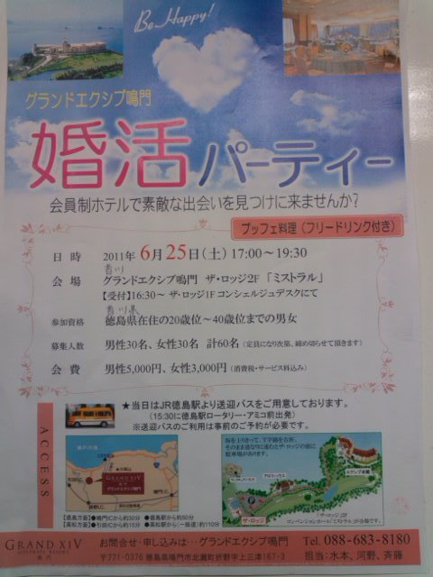 そこで今日は、グランドエクシブ鳴門さんの、6/25に開催される婚活パーティをご紹介!