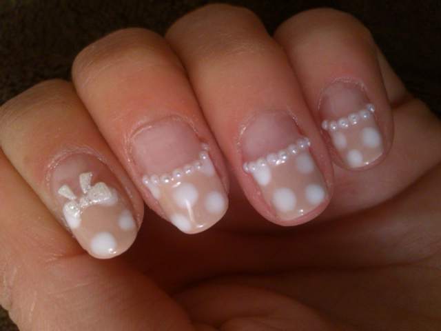 色も、ショコラとホワイトを混ぜ合わせて、柔らかいベージュっぽい色に仕上げました。リボンはシールで簡単に。あとは、パールを並べただけなんですが、結構可愛くできましたでしょ