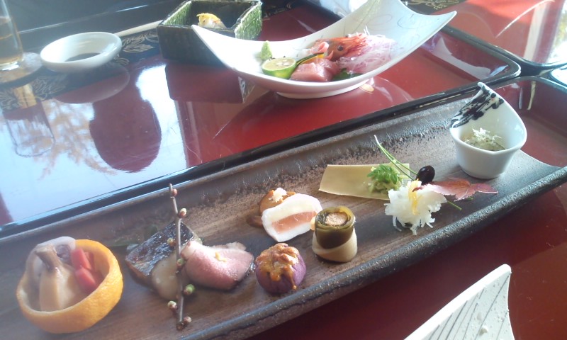 中華料理みたいにテーブルの中央にくるくる回すミニテーブルがありました。どんどん運ばれてくるお料理はすべてそのミニテーブルの上におかれていき、みんなどクルクルくるくる…………